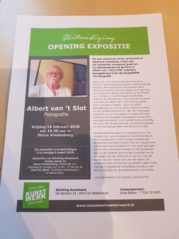 Expositie Albert van 't Slot februari /maart 2018 Huis ter West (flyertekst).