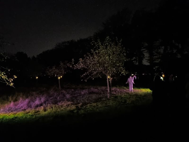 Achteraf had ik wellicht ook nog lampen uit moeten zetten maar ja achteraf weten we alles beter en het duurde maar twee uur van 9.00 uur tot 11.00 uur Kort maar krachtig het geheel werd nog versterkt doordat het pand Kernhem aan de buitenzijde verlicht werd, zelf vindt het geheel voor herhaling vatbaar en de tekst doet dan ook vermoeden, dat er dit jaar (2023) er een tweede nachtvinder-festival gaat plaatsvinden, wie weet gaat dat gebeuren. gezien het aantal bezoekers in 2022 lijkt het mij niet meer als normaal dat het gaat gebeuren ik in ieder geval zou het toejuichen………